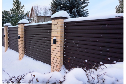 Крышка для забора жалюзи — это декоративный элемент, придает завершенный внешний вид секции. С крышкой обрезная кромка забора становиться безопасной. Элемент делает забор еще более надёжным и устойчивым к внешним воздействиям окружающей среды.